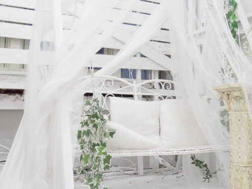 天蓋風のベッドに、かわいいキッチン、ペパーミント×ホワイトが映える猫足バスタブなら、爽やかセクシーな写真だって撮れちゃうかも♪