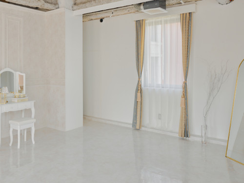 自然光がたっぷり差し込むシンプルな白壁の空間は、どんな作品の世界観にもマッチしやすく、幅広いシチュエーションに対応可能。