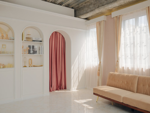 ピンクをアクセントにした上品で可愛らしいインテリアは、姫系やクラシカル、アイドル風など様々なテイストに合わせやすく、コスプレ撮影はもちろん、ポートレート撮影や創作撮影にもピッタリ。