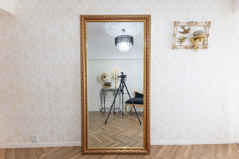 本やキャンドル・ドライフラワーの他に、大きな姿見もご用意しているので鏡合わせの撮影などにも活用いただけます。