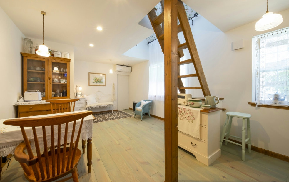 落ち着いた雰囲気の室内には、丁寧にコーディネートされた家具や照明が配置され、クラシカルで洗練された世界観を演出します。