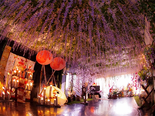 異なる4つのブースで属性の異なる草花で世界観を演出されており、「桜ブース」「藤ブース」「彼岸花ブース」「レンガの壁ブース」それぞれがディップアートの花とそれを引き立たせるインテリアでクオリティの高い空間を演出。