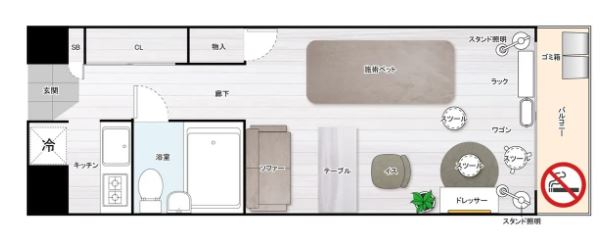 グレーを基調とした落ち着きのある空間に、白とゴールドの高級感あるインテリア、ソファやチェアなど撮影に使える小物が充実しているので、コスプレやポートレート撮影のほかにもYouTube撮影・ライブ配信など幅広い用途にお使いいただけます。