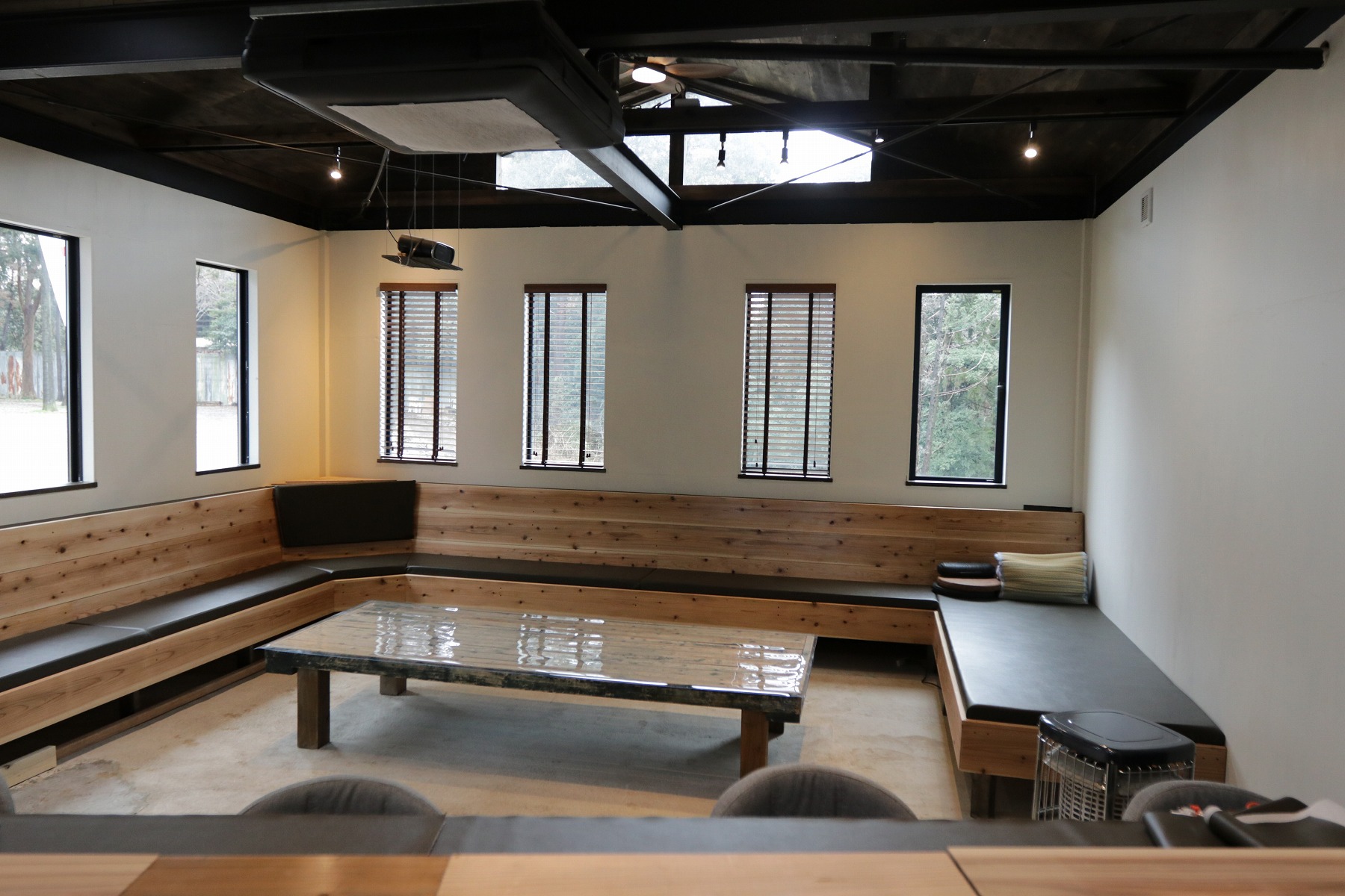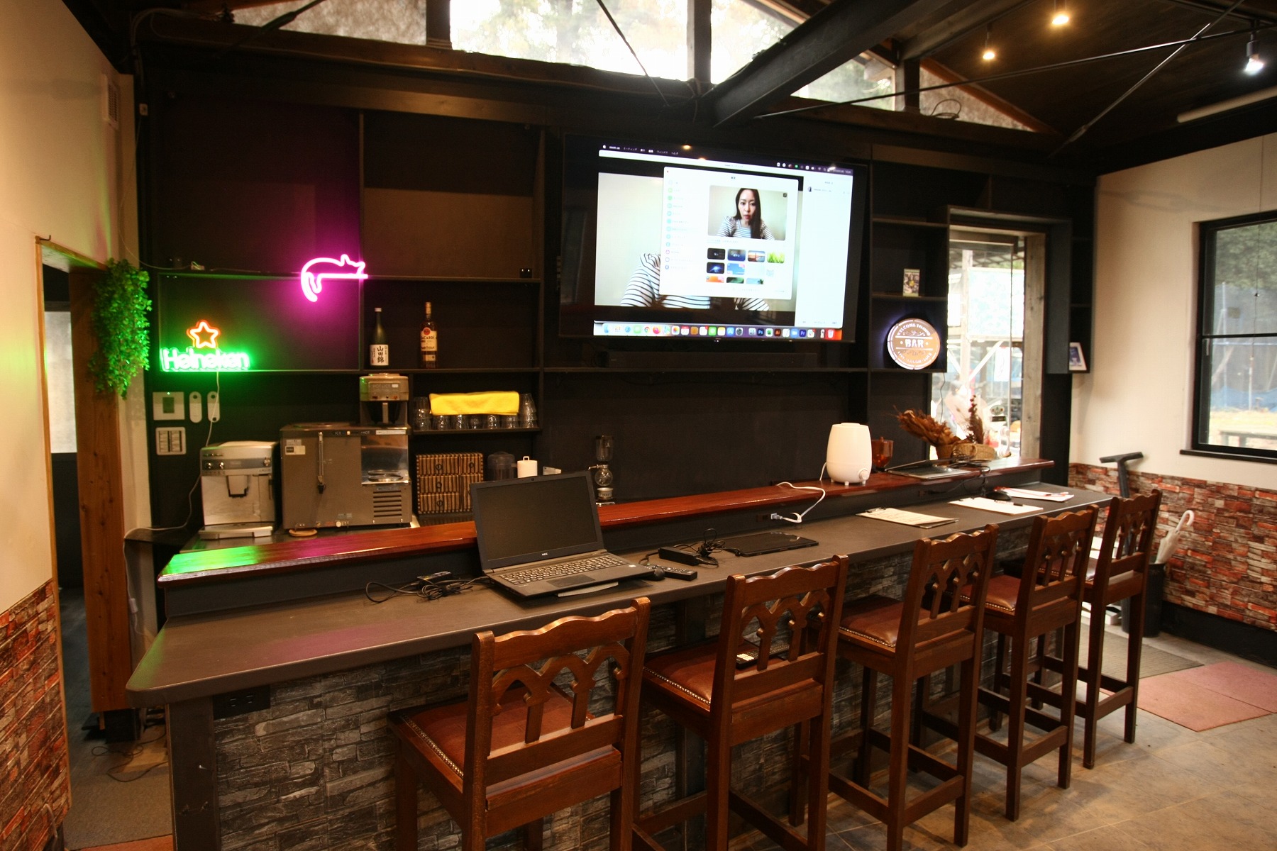 【カフェ】カフェなので美味しいコーヒーもあります。76インチモニターで撮影した写真や映像も視聴可能。 周りに民家もないので、大音量で音楽かけてもOK。