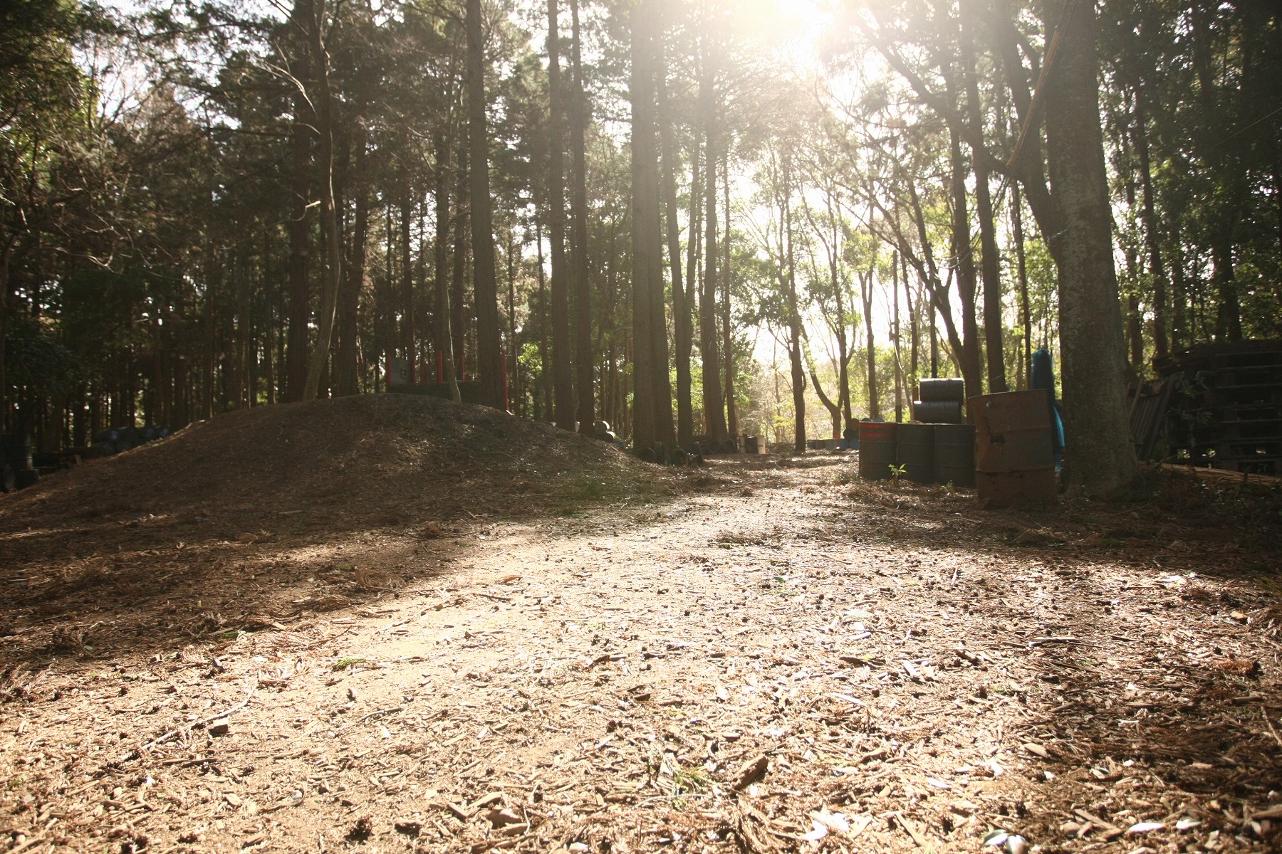 【Aフィールド】勾配が少なく平面な森です 普段はサバゲー、キャンプ、焚き火、バギー体験が行われています