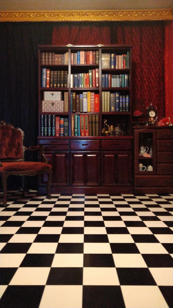 赤の部屋 はイングリッシュ・チューダー様式の重厚な空間で、深紅のダマスク柄壁紙が高貴なキャラクターやクラシカルな世界観にぴったり。