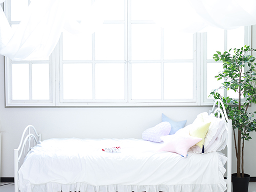 白を基調とした自然光たっぷりの明るいコスプレ撮影スタジオ「スタジオふぇありる」。自宅のように気軽に使っていただきたいという想いで、日々DIYしつつコスプレイヤーさん・カメラマンさんに快適に感じていただける空間をご用意しております。スタジオロケーションは白スペースがメインのシンプルな空間となっており、ベッドやソファなどのインテリアを活かして雰囲気を演出いただけます。何といっても大窓からの自然光が自慢で、自然光を活かした撮影や自撮りなど、被写体をしっかり盛れるスペースとなっております。また、シンプルなスペースではありますが、床や壁面のパネルを変更可能で、柄や色を変更することでガラッと雰囲気や世界観を変えて撮影することも可能な自由度の高いコスプレ撮影スタジオとなっております。コスプレ撮影以外にも、ポトレやモデルさん・グラドルさんの商材向け撮影、YouTuberさんの動画撮影など、幅広い用途にご利用いただけますので、目的に合わせてお気軽にご利用くださいね♪