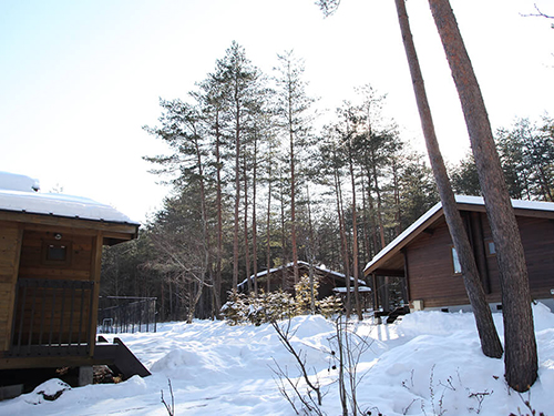 コテージ周辺(お部屋内でも別荘周辺でも可)をバックにスナップ撮影