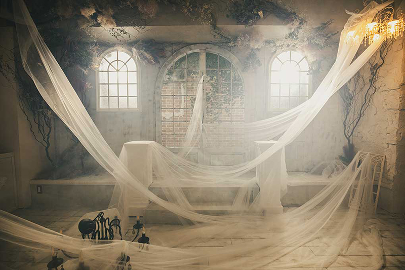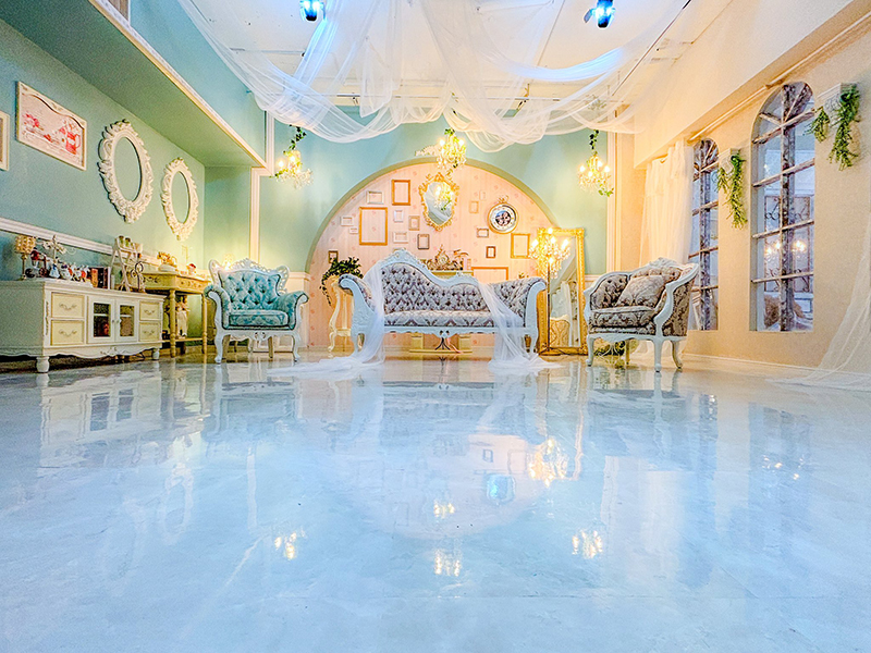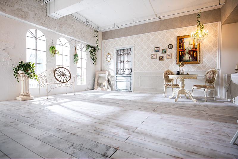 ロケーションも豊富で、ガーリーなテイストからアンティークウッドの床材を使ったヴィンテージ感のあるブース、レース材と大きなアーチ窓で演出された幻想的な空間etc…多彩なシーンで撮影可能です。