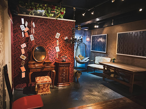 ロケーションはそれぞれ洋館風ブース・和風商事ブース・白階段・土壁風ブースなどご用意しており、はしごやトランプ・番傘に刀など撮影小物も充実しているのでロケーションと掛け合わせてクオリティの高いシチュエーション撮影が可能。