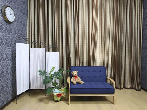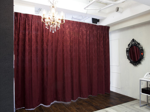 スタジオ内には3本のカーテンレールが設置されており、空間を仕切ることで複数の撮影シーンを作り出すことが可能です。