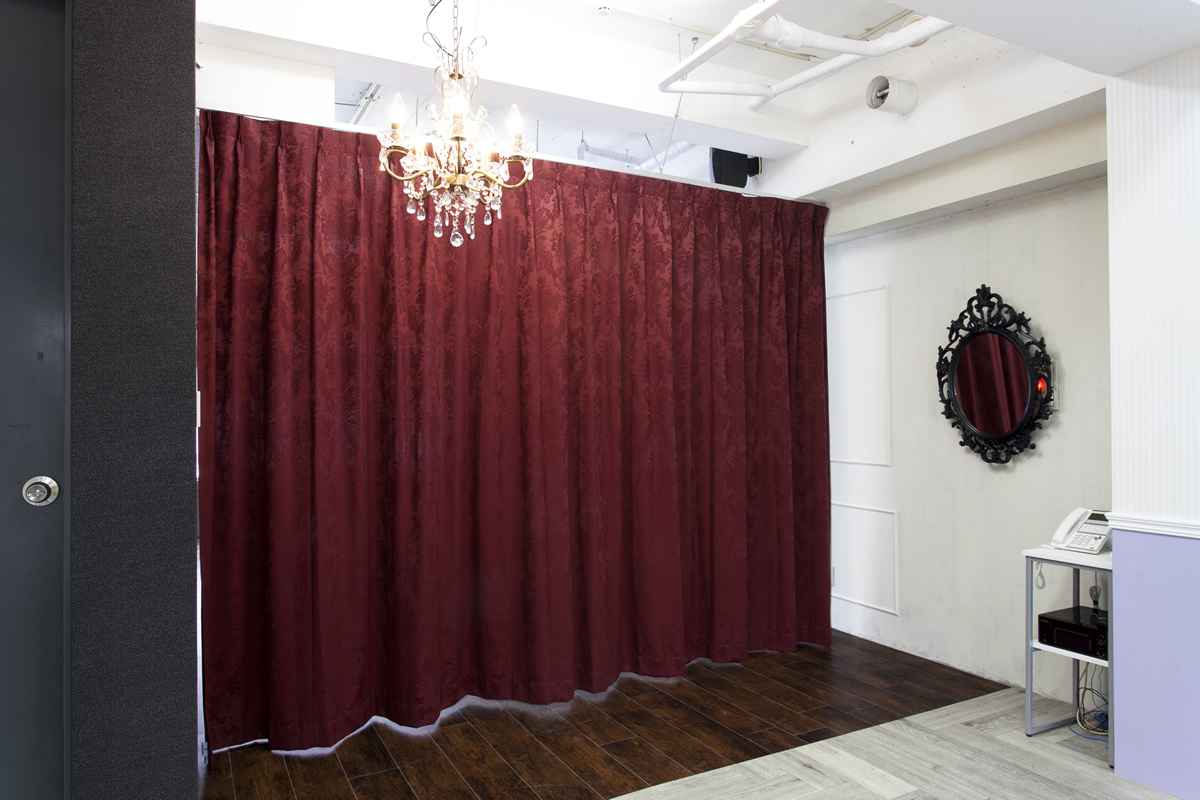 スタジオ内には3本のカーテンレールが設置されており、空間を仕切ることで複数の撮影シーンを作り出すことが可能です。