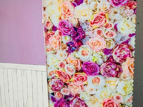 花背景やピンク壁の簡易エリアもあり、ポップな撮影にも対応します。