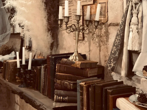 室内には本物のアンティーク家具や洋書が並び、時間がゆっくり流れるような幻想的空間が広がります。