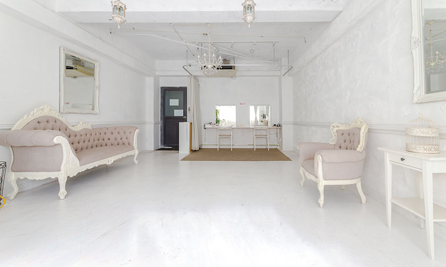 「リューキデザインスタジオ 撮影スタジオ【B】ホワイトゴシック…ちょっと廃墟」は壁、床、天井が全てが白で統一された撮影スタジオ!