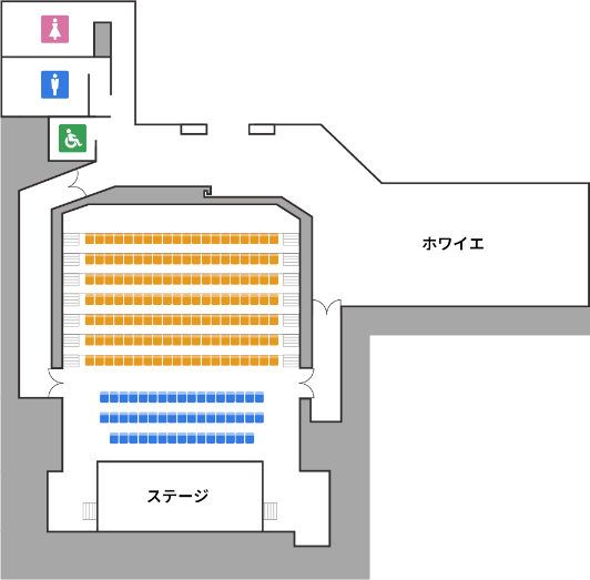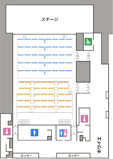 撮影できるエリアは、ステージ上を含むホール内、ホワイエ(各ホール玄関口)、楽屋内。ホールならではの本格的な舞台セットを背景に、特別な撮影が楽しめます。さらに、スポットライトや舞台環境を活かした演出ができるのも魅力。照明は事前にセッティングされており、ホールAは3か所、ホールBは1か所の固定照明が利用可能です。