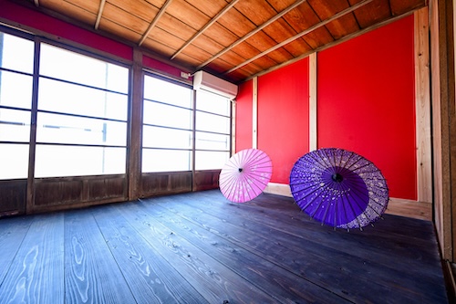 古民家ならではの梁や木の質感、自然光が差し込む落ち着いた室内は、和装系や歴史作品はもちろん、創作・ファンタジーなど幅広いコスプレ表現にも調和します。