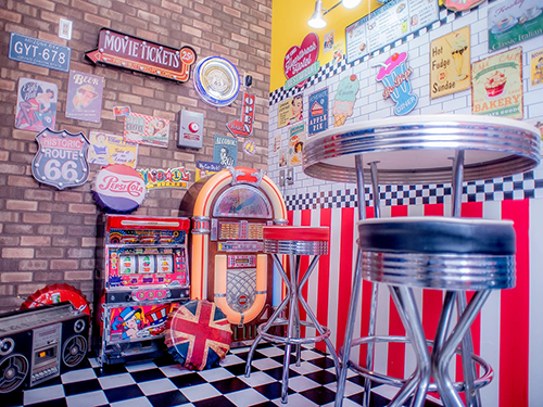 Aスタジオ・Bスタジオの2種類の撮影スペースがあり、Bスペースは英国風の街並みを再現した空間やポップでカラフルなダイナー風のブース、ほかにもカジノブースや白ブースなどもご用意しています。