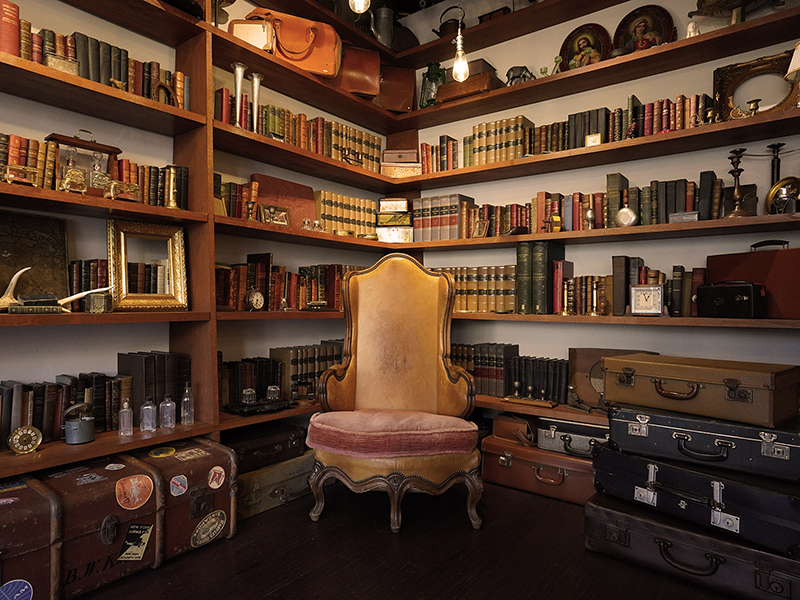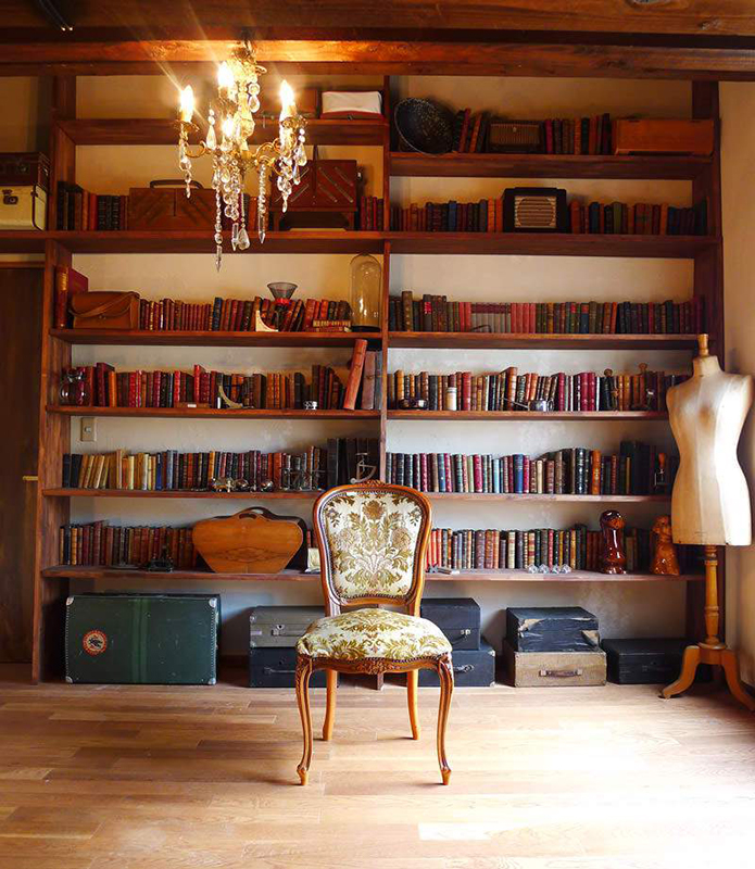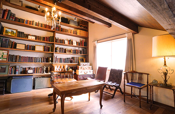 1000冊以上のアンティーク洋書が陳列された書斎スタジオ