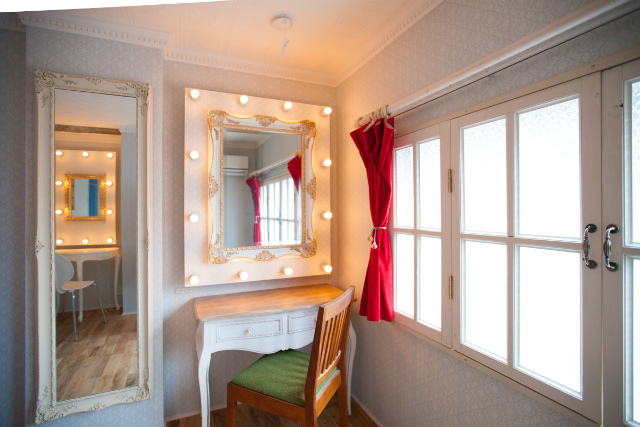 さらに、テーブル&チェアのあるスペースやキッチンフロアはもちろん、メイクルームもこだわりを感じさせる作りになっています☆