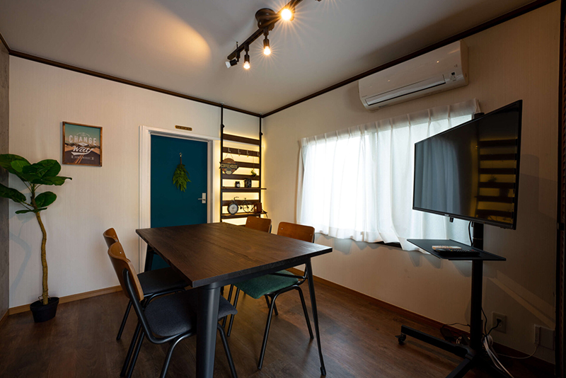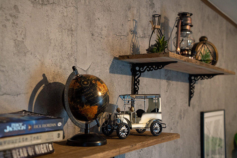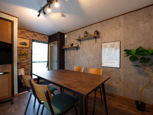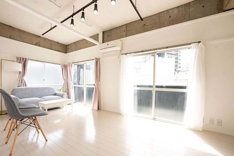 ハウススタジオはコンクリート打ちっ放し風の壁面、インダストリアルスタイルな家具、アメリカっぽさが残る備品や小物でスタイリッシュな部屋もあり、2つの雰囲気をお楽しみいただけます。