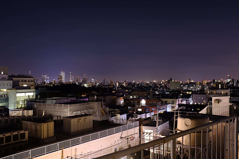 日が沈んだ後の屋上からの眺望です。日の出や夜間などのイレギュラーな時間での撮影もお気軽にご相談ください。
