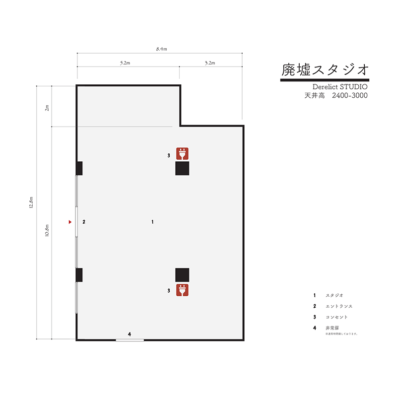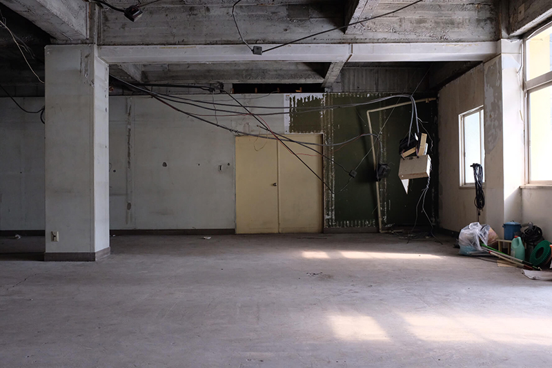 解体工事のときに壊してぶら下がったままの電気ボックスや、むき出しの配線など、廃墟感のある雰囲気をそのままに残してあり、リアルな廃墟感で撮影をしたい方に最適です。