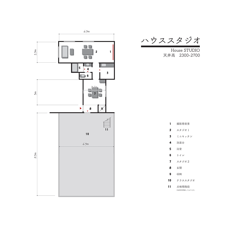 ハウススタジオは屋上のテラススペースもご利用可能です。多目的利用できるスペースなのでお気軽にご相談ください。