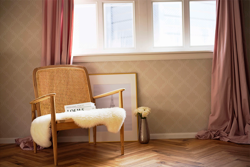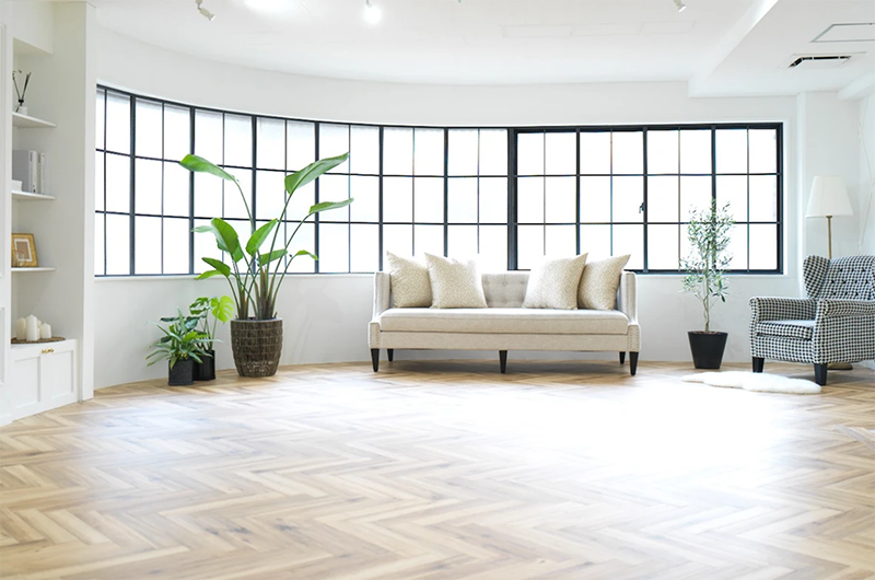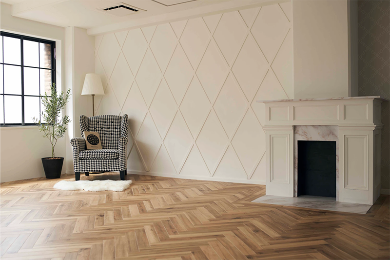フローリングのヘリンボーン柄がアクセントになり、背景や撮影小物との掛け合わせで多彩なシーン撮影が可能です。