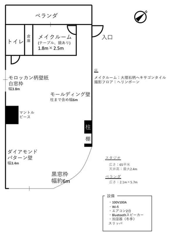 どちらのフロアもメイクルーム完備・レンタル機材も豊富と使いやすいスタジオとなっておりますので、撮影したい作品やイメージに合わせて使い分けてください。