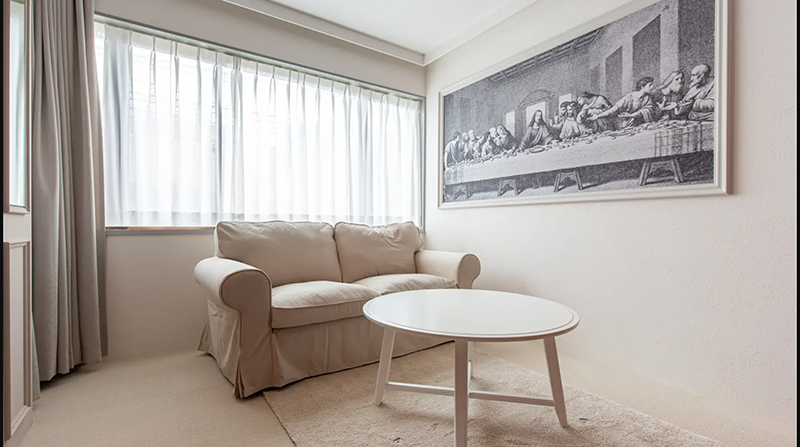 白ブースは窓からの自然光と色味を統一したインテリアが揃っています。