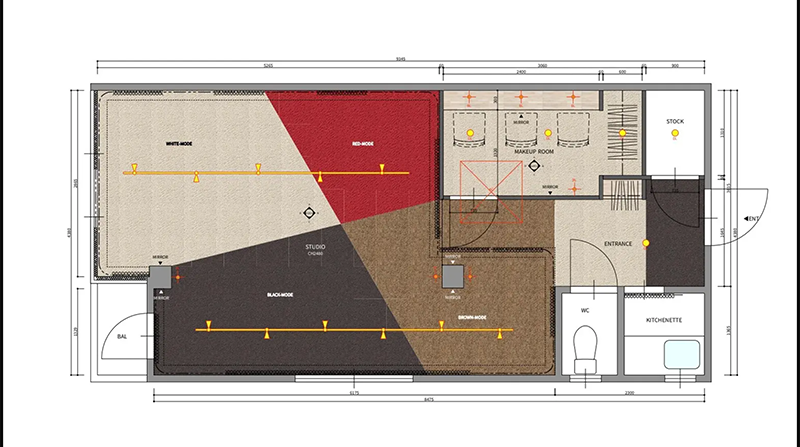 それぞれのスペースで床のカラーまで統一感を持たせる仕様で演出をしているので引きの構図でも使いやすいのがポイントです♪