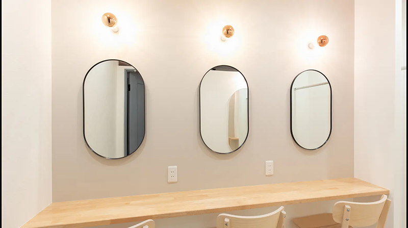 各ブース、床から壁にかけてテイストを統一してあるので引きで撮っても映り込みしにくい形となっております。
