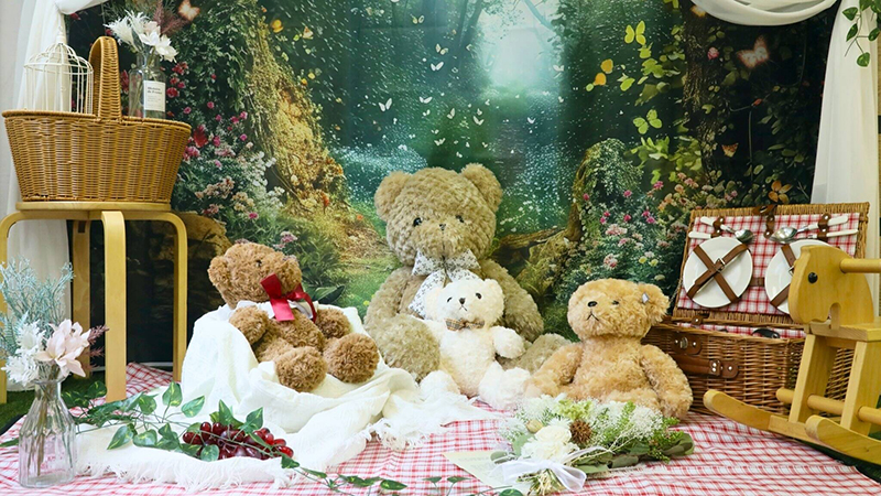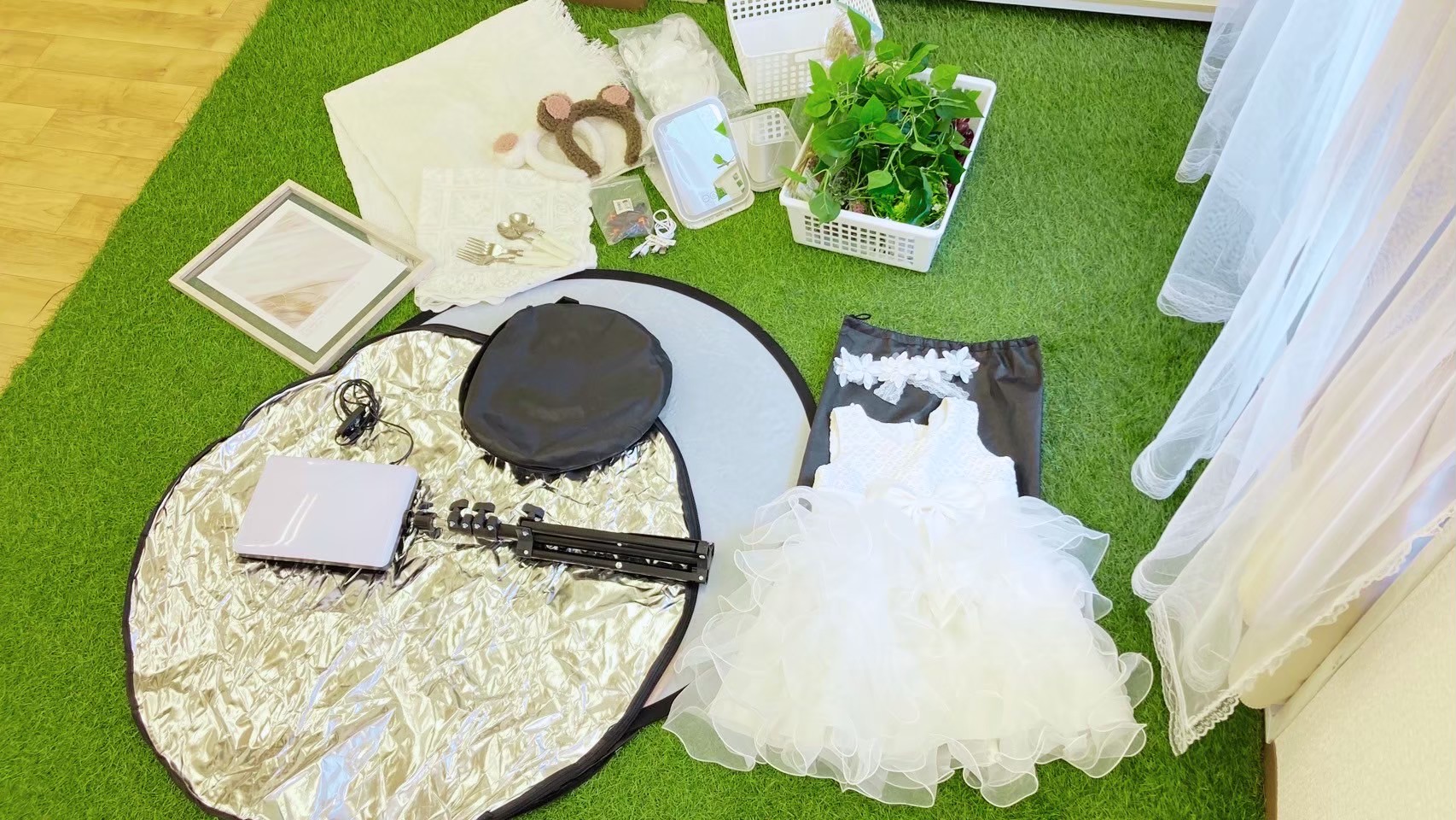 ぬいぐるみの他にも子供用おもちゃ等もあるので、メルヘンな世界観も演出できますよ♪ 他にも撮影小物も多数ご用意がございます!