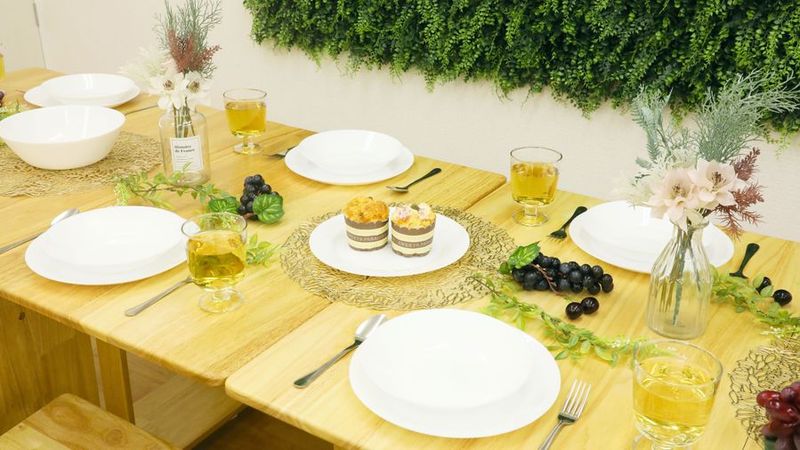 食器やカトラリーもあります※衛星上の観点で調理器具は最低限のご用意となります