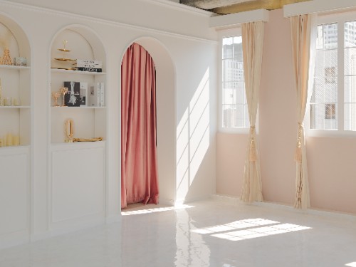 自然光がたっぷり差し込むエレガントなベッドルームは、白を基調とした柔らかな空気感が魅力で、可愛らしさと上品さを兼ね備えた写真表現が可能です。ふわふわの毛布や枕などの小物も揃っており、日常系からファンタジー系まで幅広い作品に対応可能です。