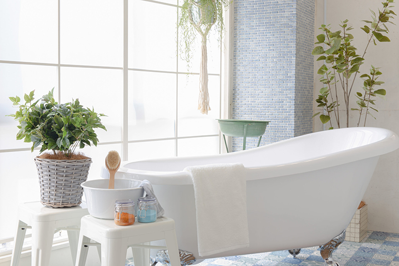 バスタブロケーションも柔らかな自然光に植物でクオリティの高い空間となっております。