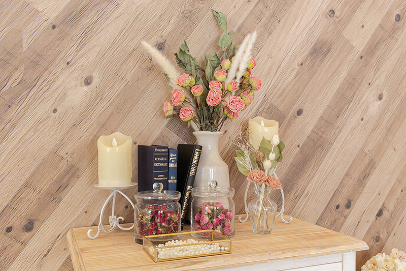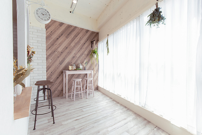 ウッド調の床に同じく木目の壁面や白壁・レンガ壁面など様々なシーンが楽しめます。