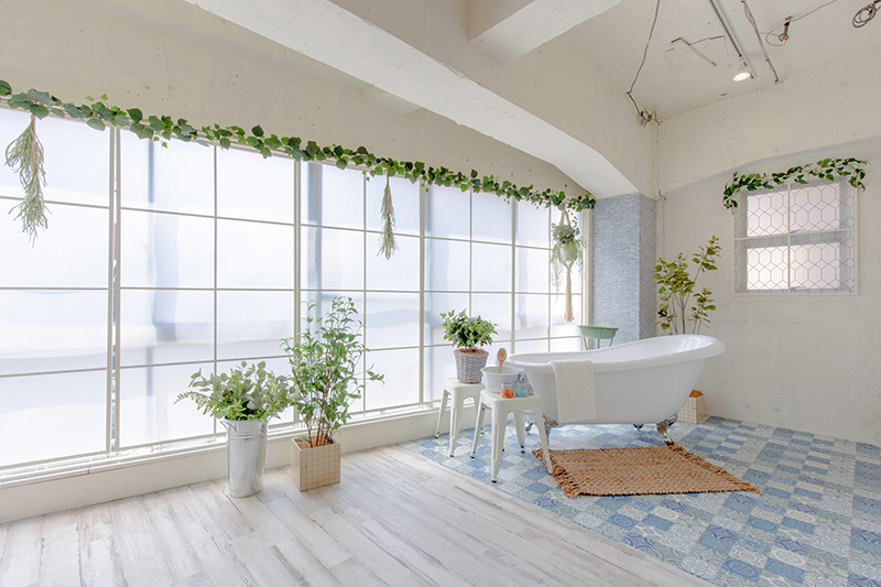 ヴィンテージ感のある家具や小物をはじめ、グリーンやおしゃれな猫足のバスタブも撮影にご利用ください。フレンチな13シーン以上もの撮影が可能。