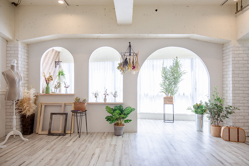 白を基調とした自然光の差し込む明るいスタジオとなっております。