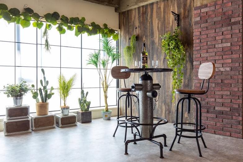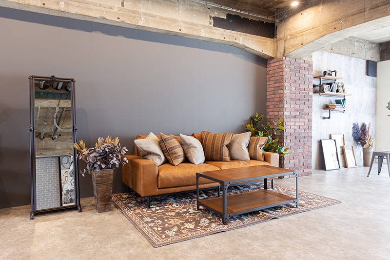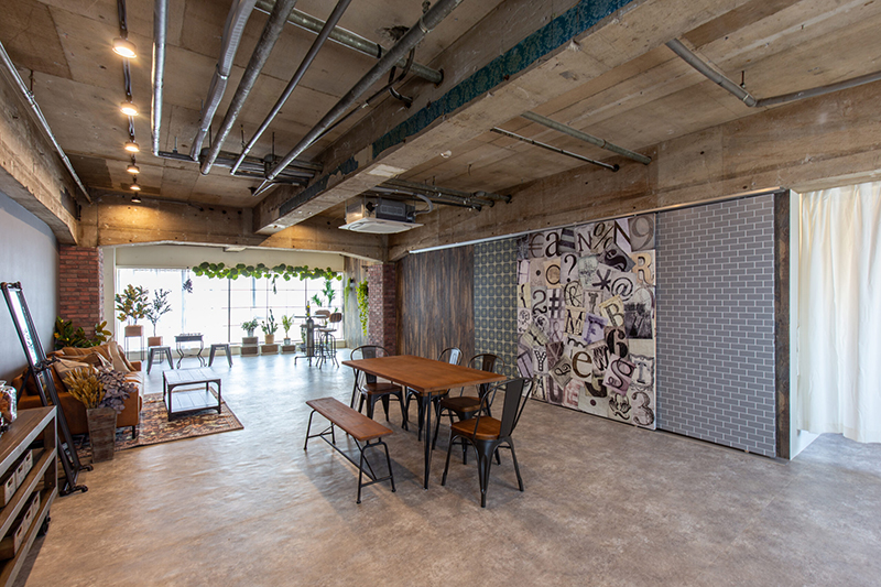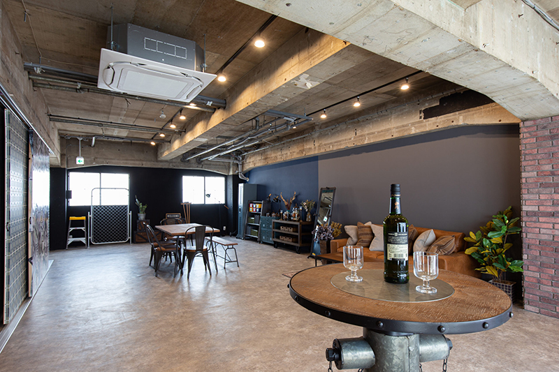 コンクリートやレンガの素材感を生かした、インタストリアルで落ち着いた雰囲気のスタジオ。