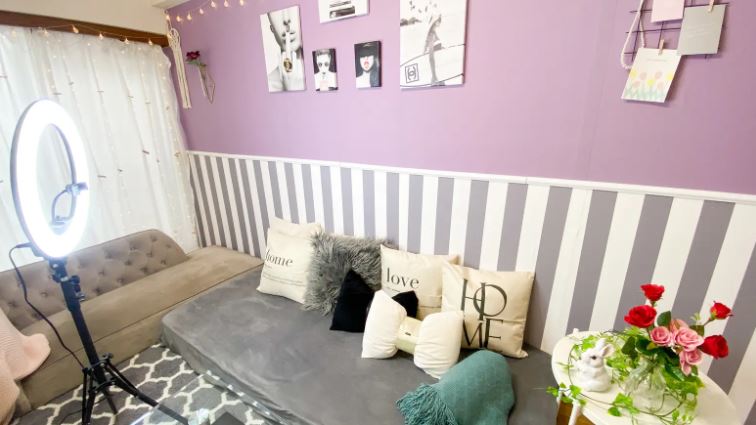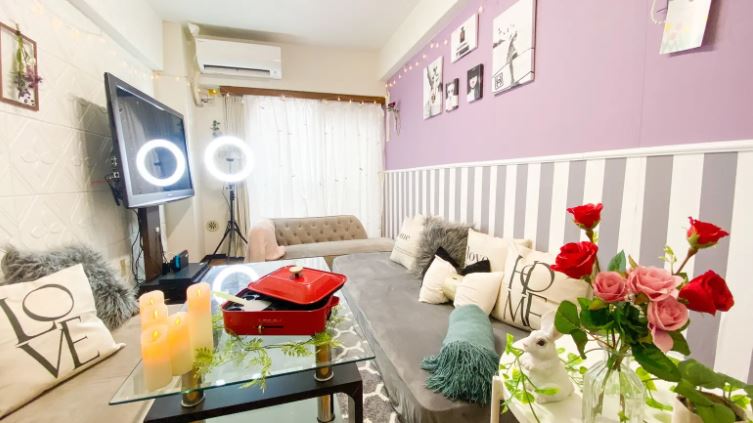 コスパ抜群ながらもロケーションは本格的!2種類の異なる雰囲気の壁紙に、ガラステーブルや照明器具・ソファやクッションなどのインテリアや撮影小物が充実していて、手軽に映えを堪能できますよ♪
