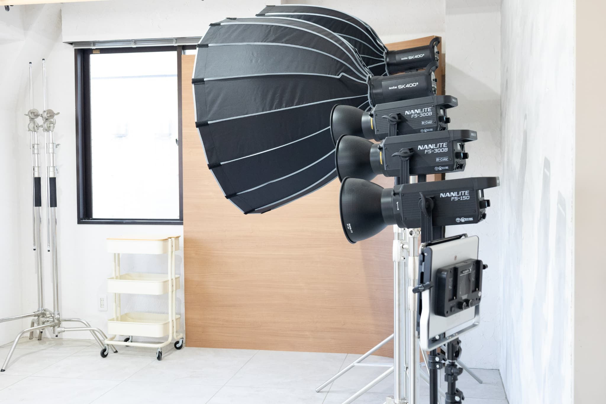 そして、プロの方にも十分ご納得いただける機材を全て揃えました。撮影機材、納得の設備はもちろん全て無料で使用可能です。