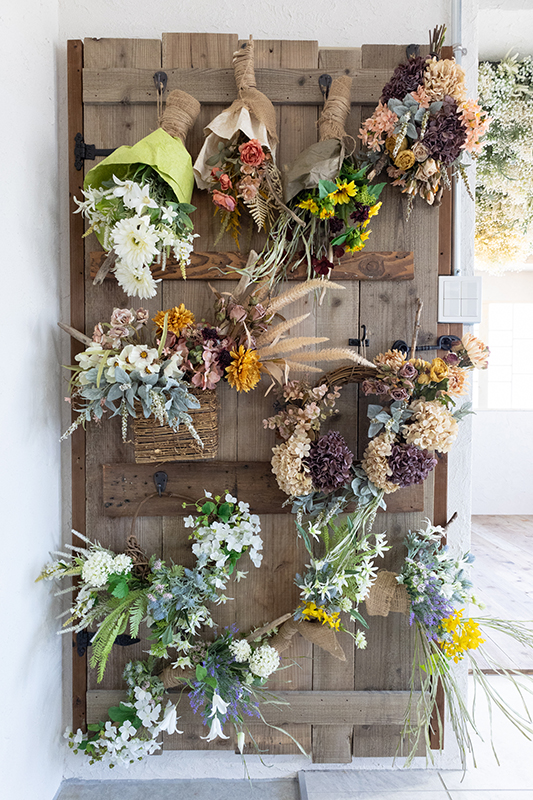 アーティフィシャルフラワーを贅沢に使用したスワッグは当スタジオだけで使える完全オリジナルです。