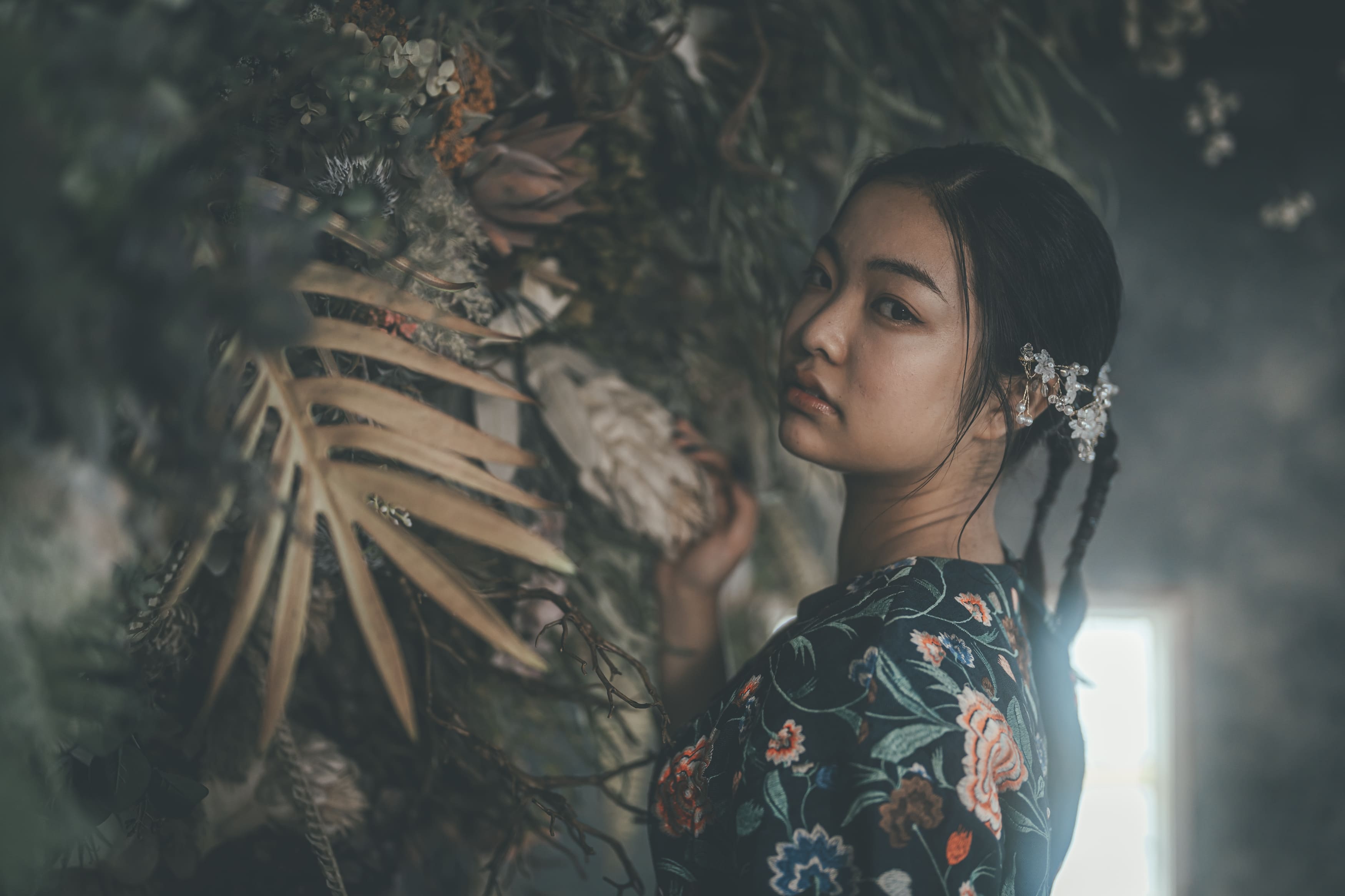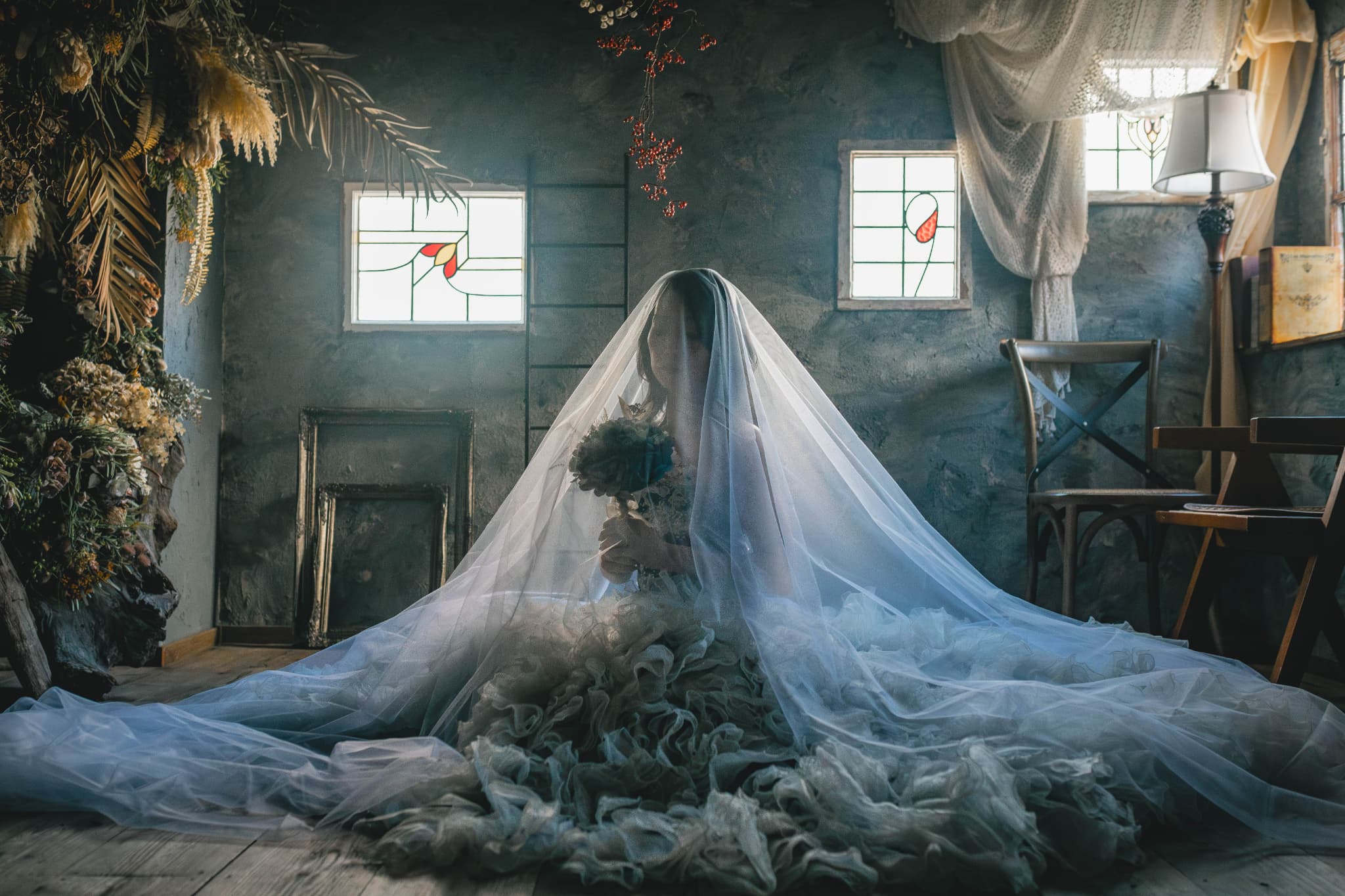 の背景にドライフラワーとカーテンが融合する空間や、漆喰壁とレンガ壁が融合する背景を駆使することで最大10種類の演出をお楽しみいただけます。