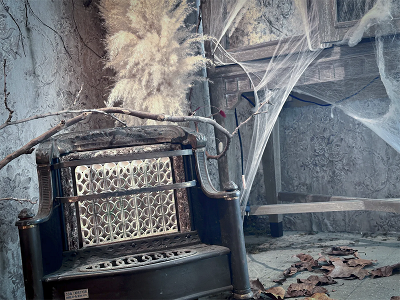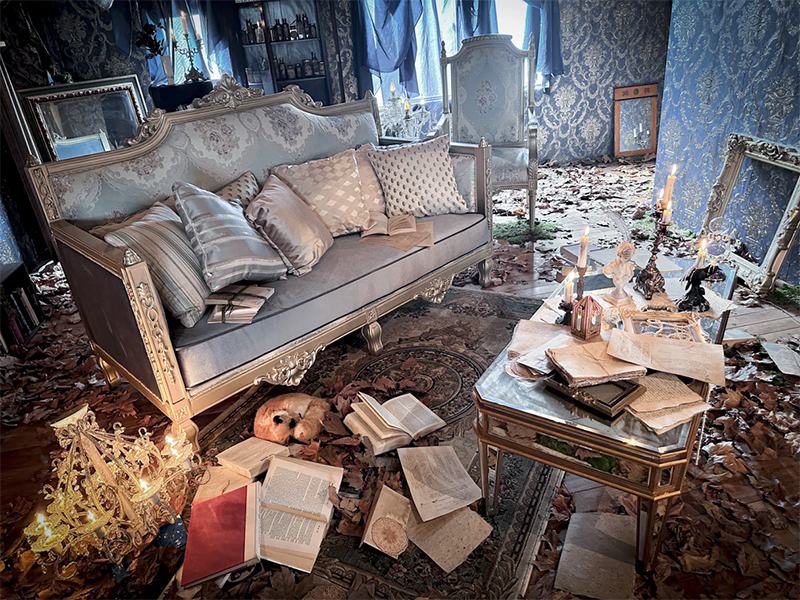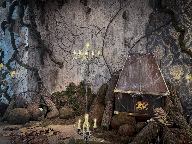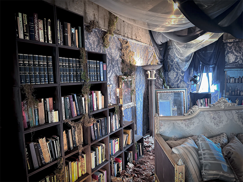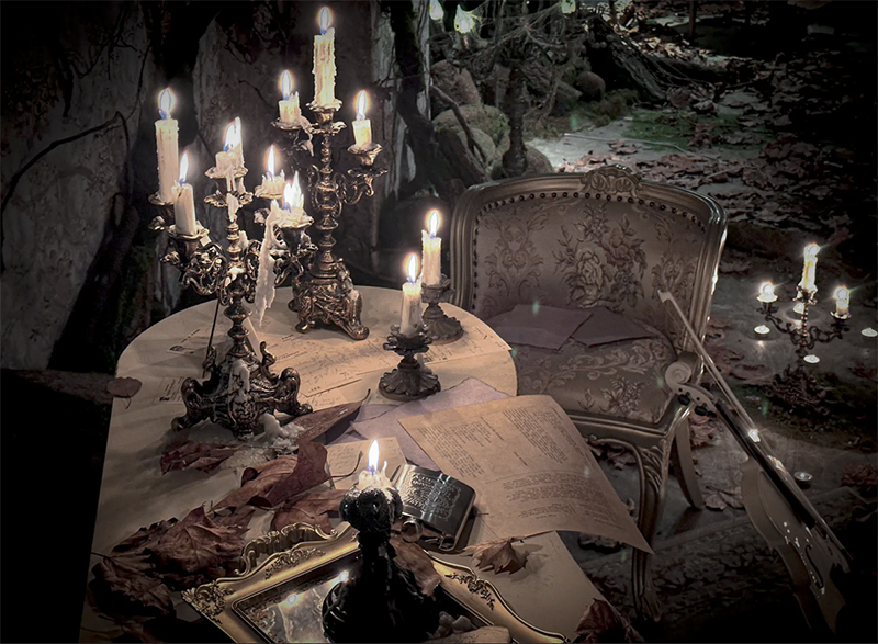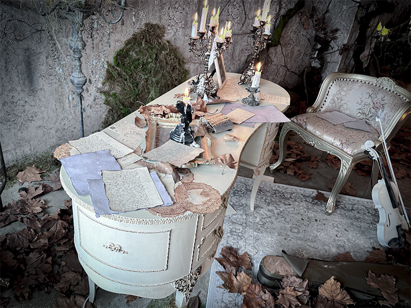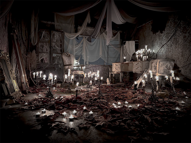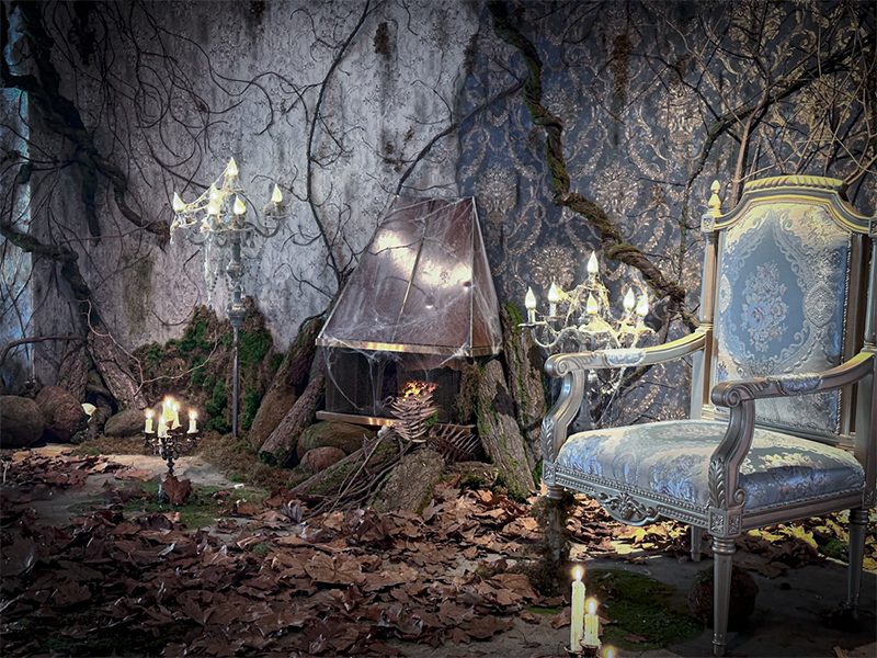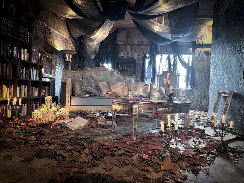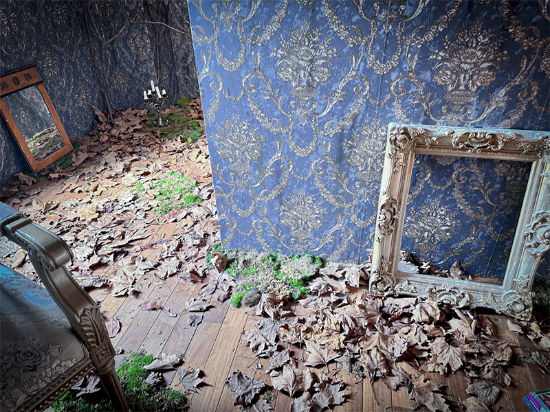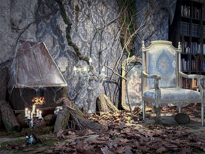 フランスのユーロヴィンテージものなどで構成され、色づいた葉が床面に散りばめられた、どこか廃墟を思わせる雰囲気が漂う幻想的な空間です。夜間撮影や有料でろうそくの火を使った撮影も可能です。