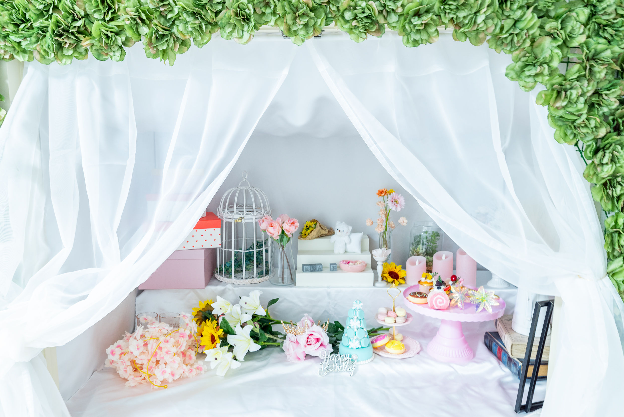 姫系のベッドをはじめ、フラワー付きグリーンマット(壁掛け)、テディベア、リボンクッション、ケーキスタンド、キャンドルライト、ブックボックス、女優ミラーまで多種多様な撮影小物があります!写真映え間違いなしです!