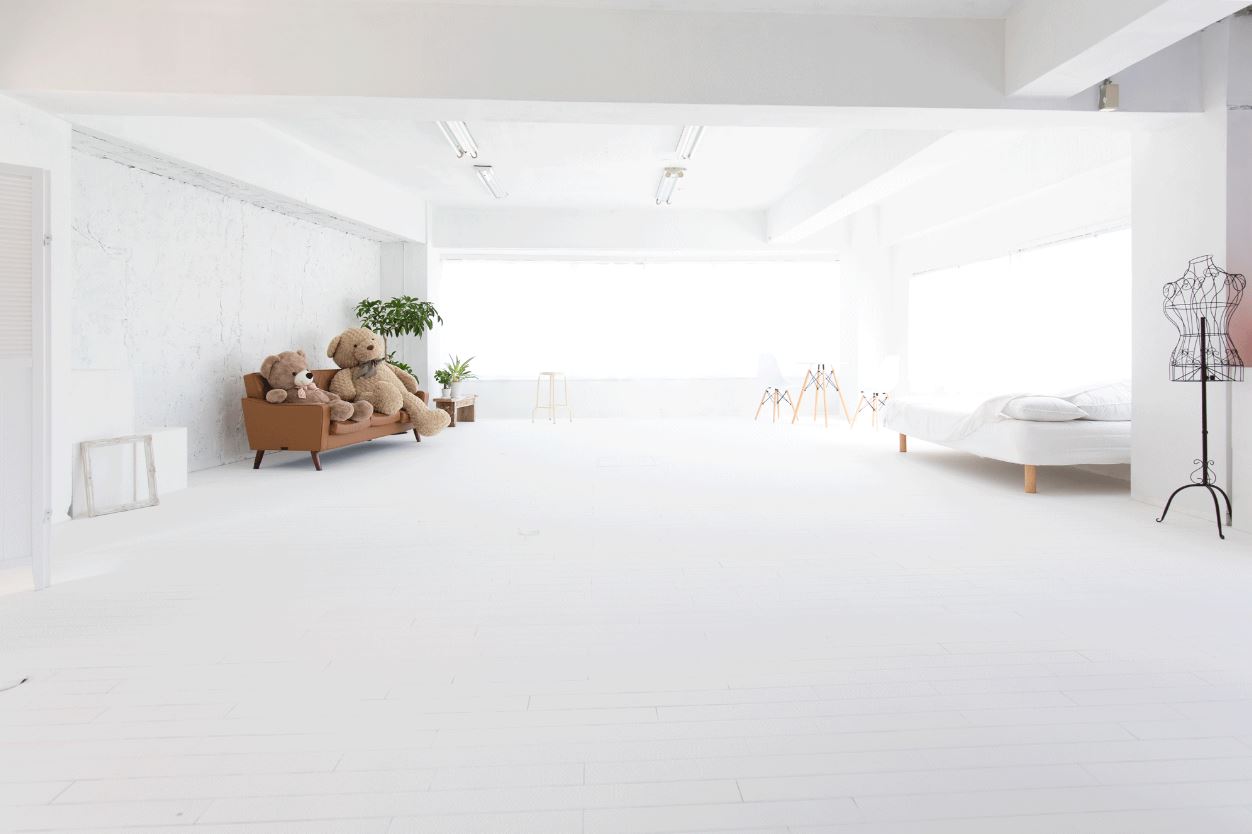 凝った造作やシチュエーションを廃し、カメラマンの創意工夫が生きるプレーンな空間を提供する白壁白床のハウススタジオです。