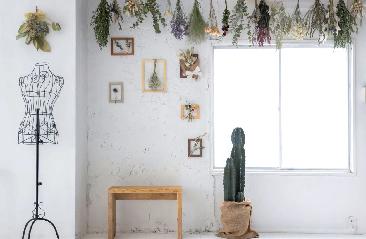 ドライフラワーを装飾したスペースもあるので違った雰囲気の撮影も可能です♪