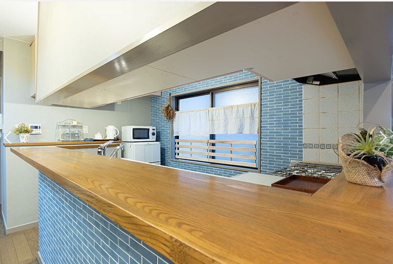 キッチンもL字のおしゃれなシステムキッチンとなっており、撮影に活用できます。